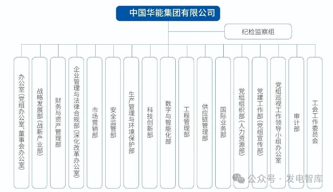 目前,拥有57家二级单位、480余家三级企业,5家上市公司(分别为华能国际、内蒙华电、新能泰山、华能水电、长城证券),职工12.3万人。