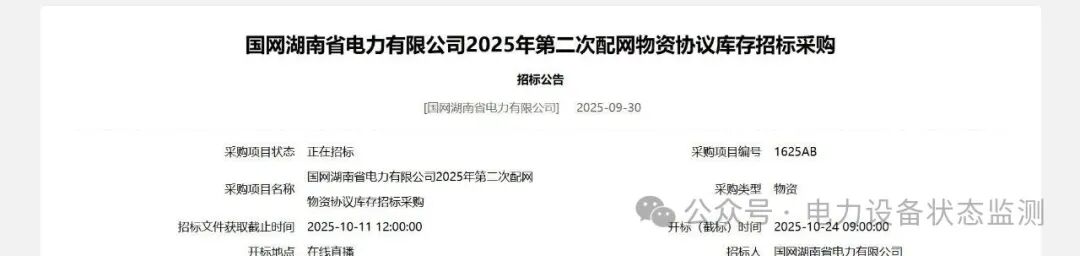 近日,国网湖南省电力有限公司发布2025年第二次配网物资协议库存招标采购。