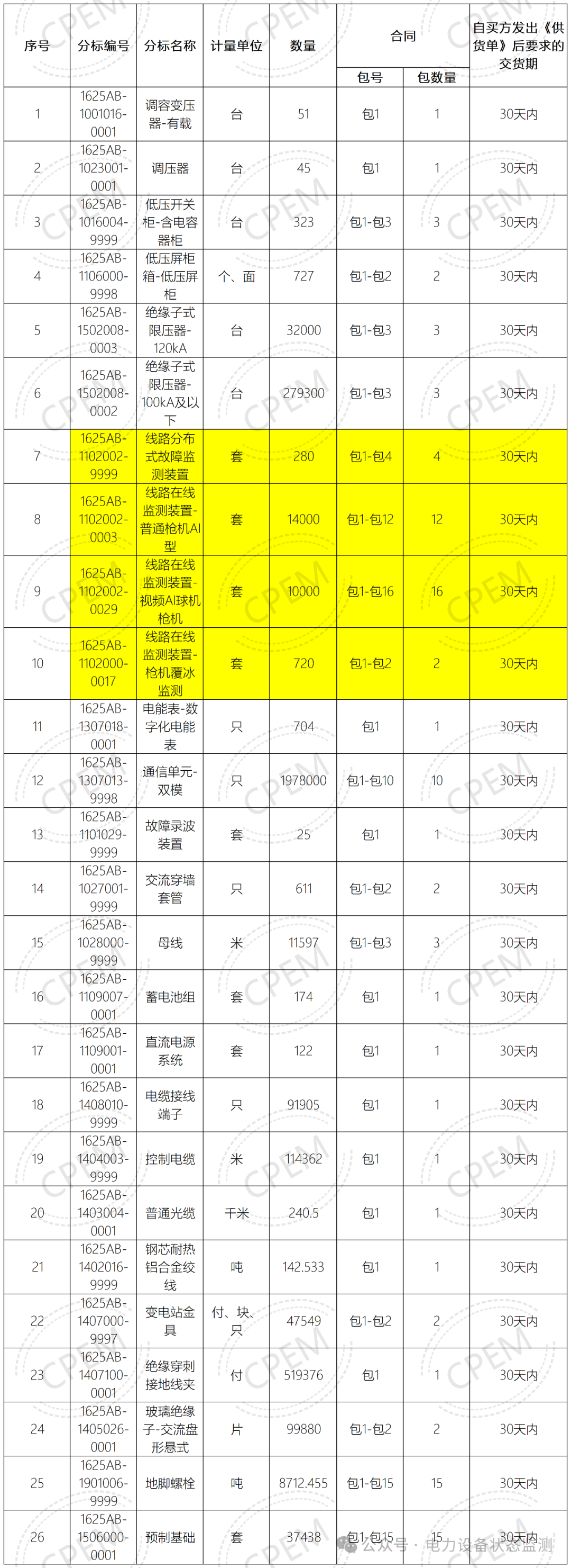 其中,线路监测装置一共25000套。分别为:线路分布式故障监测装置280套;线路在线监测装置-普通枪机AI型14000套;线路在线监测装置-视频AI球机枪机10000套;线路在线监测装置-枪机覆冰监测720套。