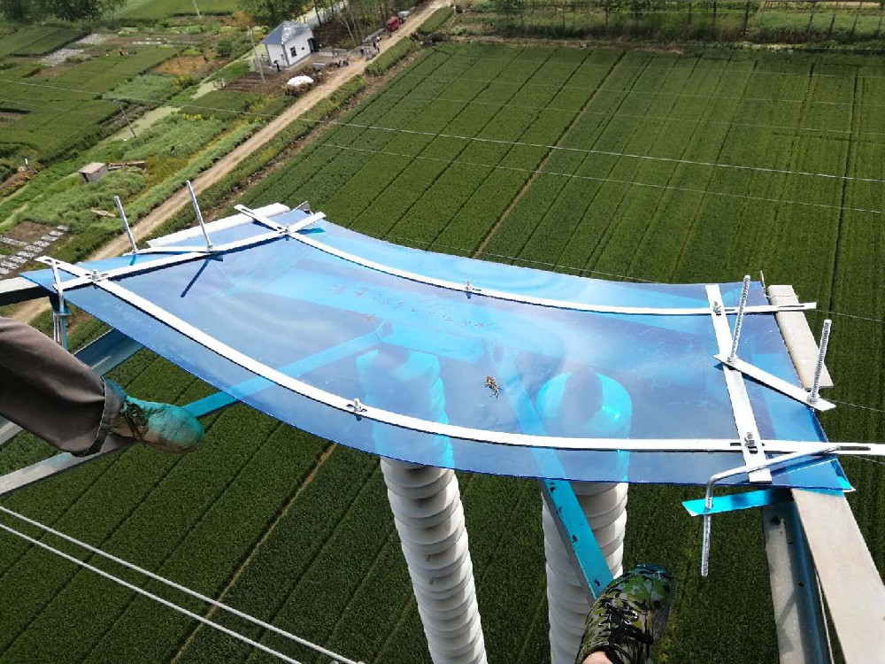 最后,他们选择了在组件集群顶部的两个长边末端分别加装可调节支架,中间用铁丝相连,让铁丝悬浮于距组件顶端约12cm的上方,这个高度略低于普通鸟类的正常体高,这样它们就无法在组件上垂直站立,而纤细的铁丝又不能作为舒适的长期支撑,从而避免了鸟类在组件区域的停留,从根本上解决了此类难题。