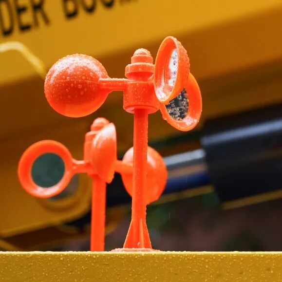 反光镜、彩旗、风车式驱鸟器,风车叶片采用高反光材料,如镜面、亮红、鲜黄色。在阳光照射下,旋转的风车会产生高速闪烁、不定向的刺眼反光。这种强烈且无法预测的光影效果,对鸟类的视觉系统造成极大干扰和恐惧感,让它们避而远之。这种装置无需电源,依赖风力驱动,但长期使用鸟类易适应。