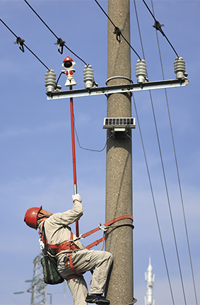 图:国网常德供电公司宝峰供电所员工对智慧物联生态驱鸟器进行安装和调试