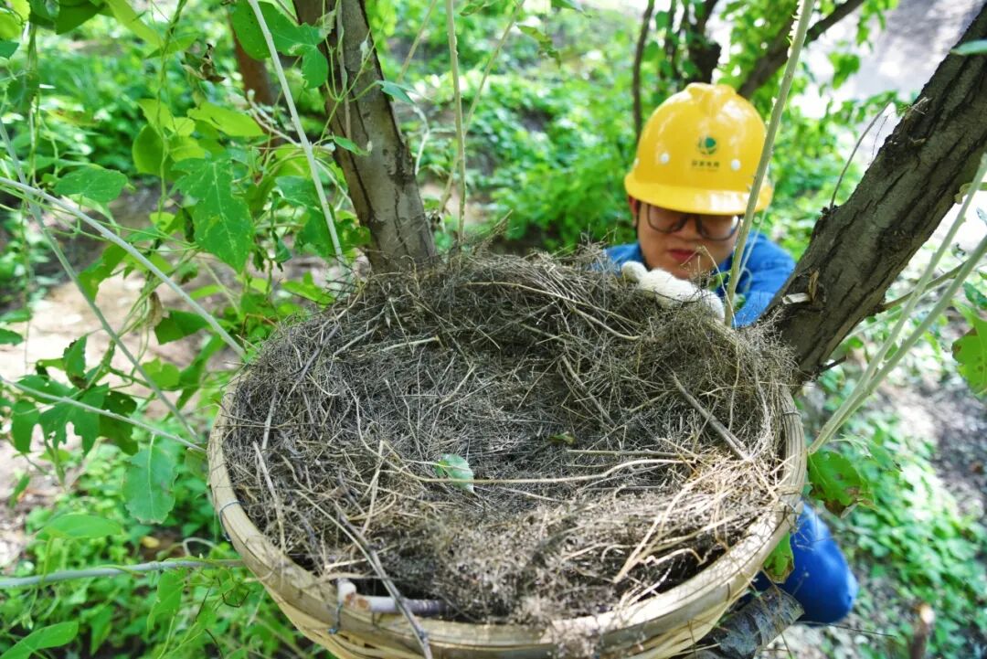 对于确认需要处置的鸟巢,由作业人员在确保安全的前提下,将其完整、平稳地取下。然后在不影响线路安全运行的合适位置或电力线路保护区外的空旷树林,利用藤条、树枝、茅草等环保材料预先搭建“人工鸟巢”,将原有鸟巢稳妥地“乔迁新居”。这种“以疏代堵、科学引导”的作业模式,从源头上化解了线路的涉鸟安全风险,不仅有效降低了线路的涉鸟故障率,更实现了电网安全与生物多样性保护的双赢。